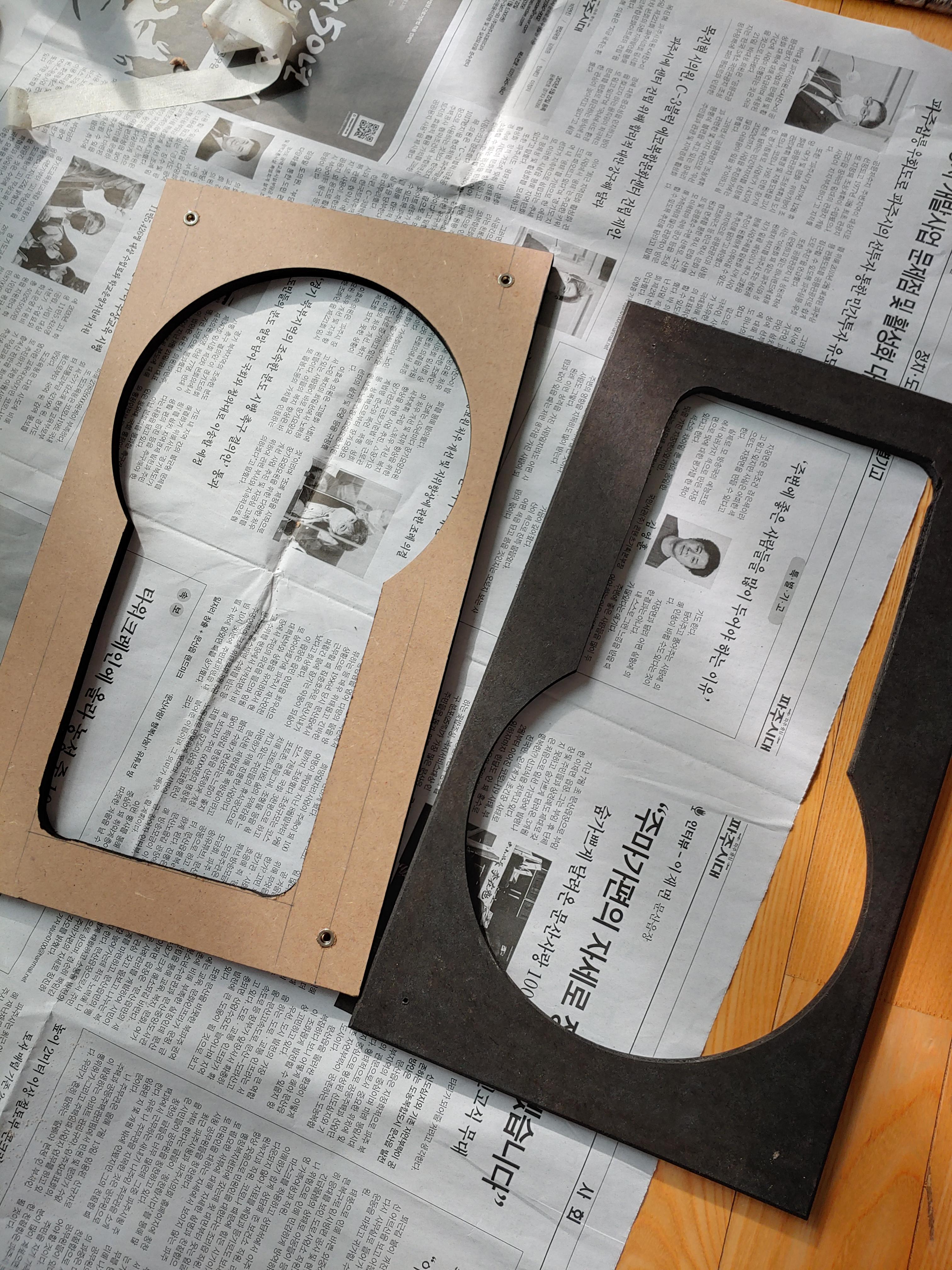 3. 유닛배치 고려하여 유닛보다 크게 원형 재단 (MDF라 쉽게 가공)