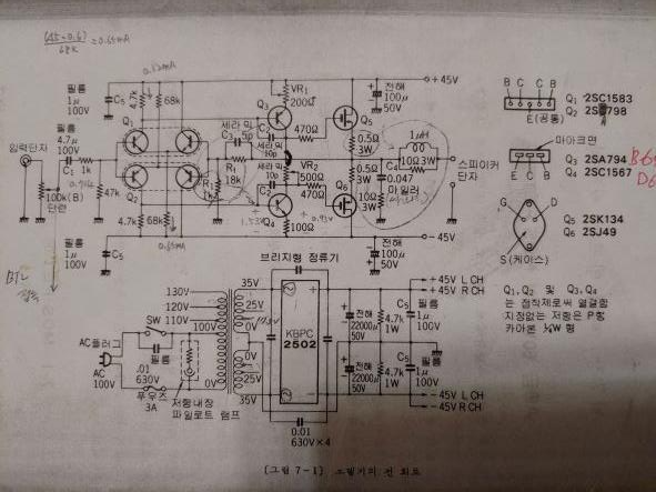 기존에 작업된것은 저항류는 국산으로 1/4W짜리, 반고정 저항은 아마도 코팔일것이다. 지방이라 부품을 구하기 어려워서 입력 cap은 엑시콘2.2u+적층2.2u+오렌지드롭 0.022u를 병렬로 연결해서 나름 덕지덕지 작업을 해서 이번 개비를 하면서 부품류를 업글하고 깔끔히 정리를 해놓기로 했다.