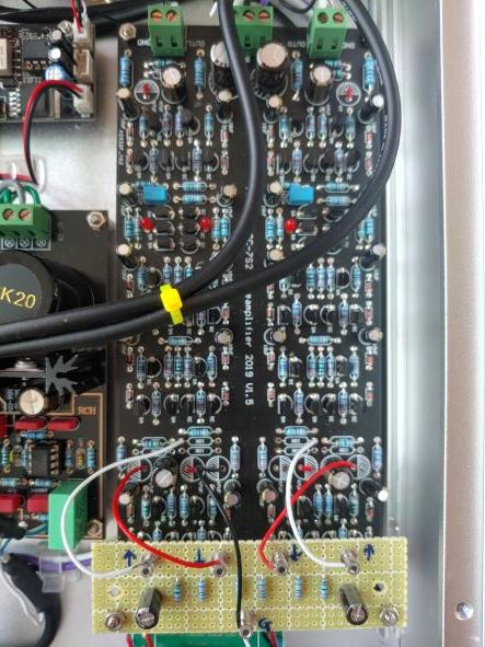 47uF-100K(접지)-519옴-47uF-2.2K이런 마무리이다. 20Hz에서 1.5dB정도 차이니 청감상 느끼지 못할것이다.