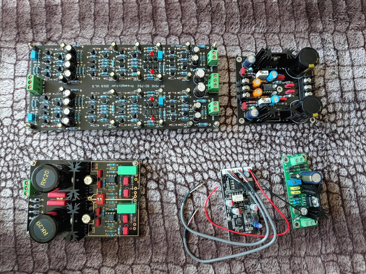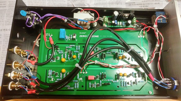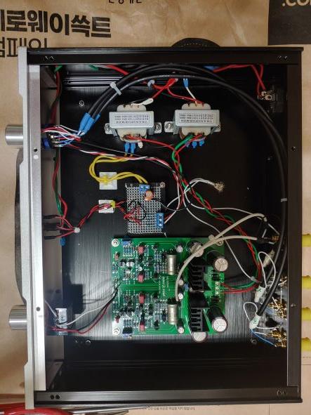 NAC 152 케이스 변경 일전에 만든 Naim NAC152 프르앰프의 전원부와 케이스가 맘에 들지 않아서 변경하기로 하였다. AC전압이 24V임에도 불구하고 24V가 나오지 않고 전원 노이즈도 있어서 정전압 회로와 케이스를 보기좋게 이식하기로 했다. 새로 구입한 정전압 회로는 프리/DAC전용이라는데 전압이 칼같이 조정된다. 10uF 필름 캡이 하단에 장착되어 있어 기판 높이가 높아 셀렉터와 볼륨 높이까지 침범하여 다시 윗쪽으로 다시 달았다. 정전압 기판 조정후 메인 보드연결하니 전원을 켜는 순간 전압 드랍이 생기면서 27옴 저항이 타버렸다. 결론은 47uF 탄탈중 1개가 문제가 생겨서 (아마도 캡내부 쇼트...) 발열이 생긴것이다. 다행히 탄탈은 전해로 저항하나 갈고나서는 문제 없이 동작된다. Audio/TR, FET Pre AMP 2022.06.06